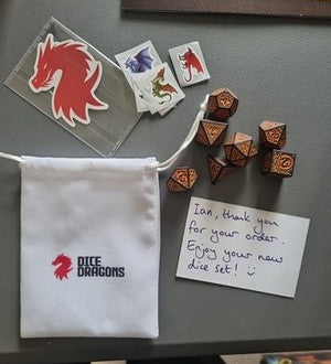 We're a UK-based small business specialising in dice and accessories. Whether you enjoy Dungeons and Dragons (D&D), Pathfinder, Call of Cthulhu, Warhammer 40k, or other tabletop and roleplaying games, we're here to fuel your creativity for all your adventures.